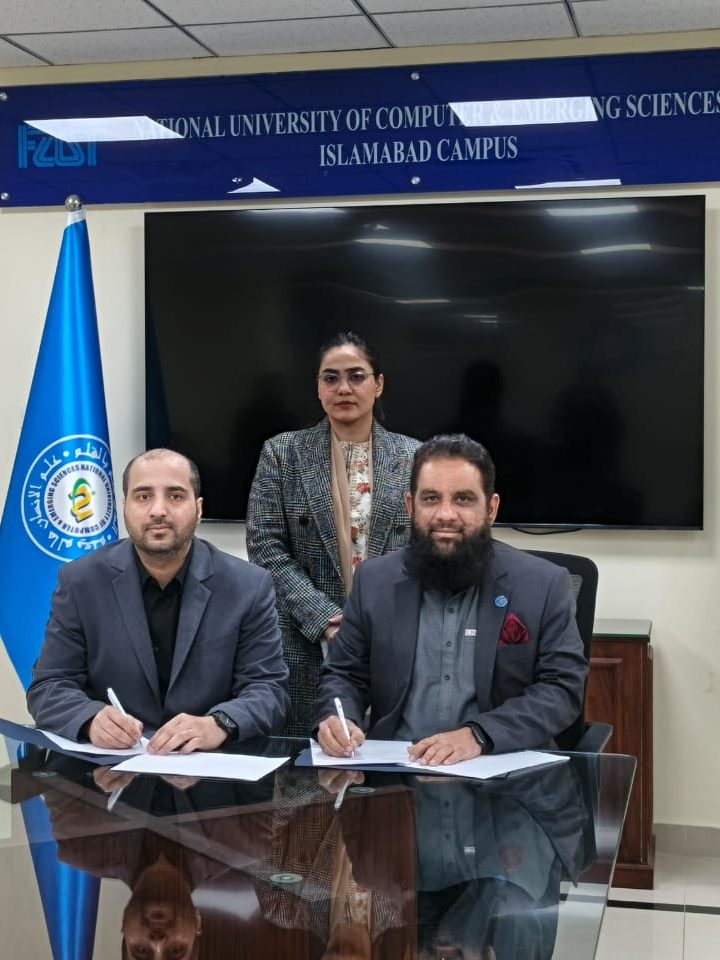 Two MoUs were signed by Prof. Dr. Talha Ali Khan, Vice President of Research and Program Leader of the MSc Data Science, with NUCES FAST (Islamabad Campus) and Sir Syed University of Engineering and Technology (SSUET). These partnerships establish a strategic framework for joint research initiatives, academic exchange, student progression pathways, and cooperation in innovation-driven, practice-oriented learning. A third agreement, signed by Prof. Dr. Raja Hashim Ali with Abasyn University in Peshawar, further expands UE’s interdisciplinary and long-term engagement in the region.